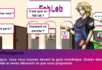 Description du projet Nous avons développé avec des étudiants de l’ESA GAMES (école de jeux vidéos de Carpentras) une application permettant de découvrir de façon ludique ce qu’était un fablab ! Vous y découvrirez quelques machines typiques, une fabmanageuse et...