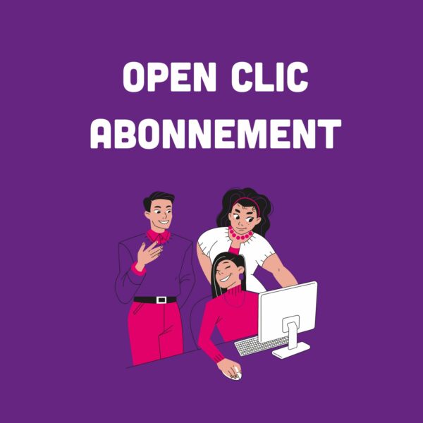 L’open clic est un abonnement complémentaire de 30€ valable sur le mois en cours. il permet d’accéder à un ordinateur, sur réservation, gratuitement, et pour progresser en autonomie et avec la bienveillance des médiateurs numériques