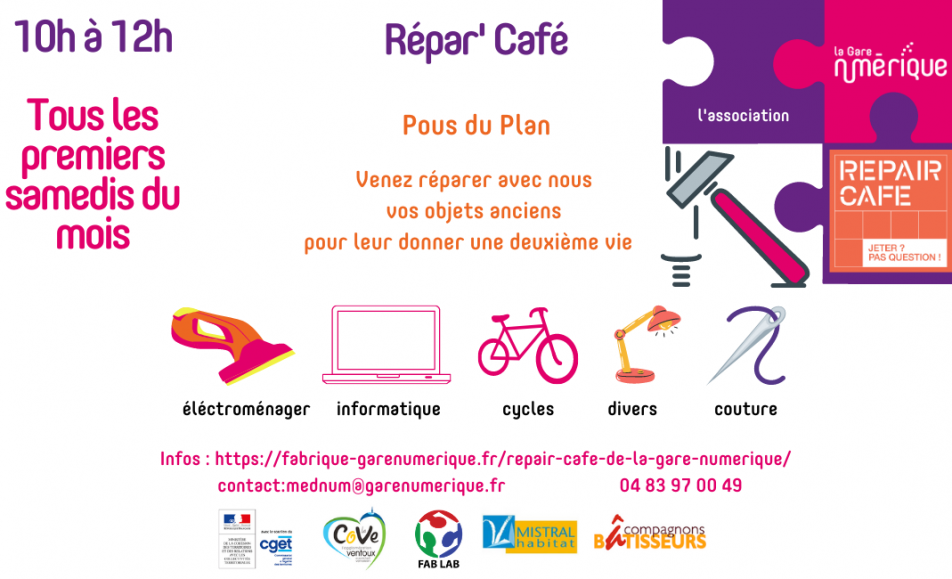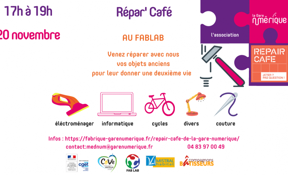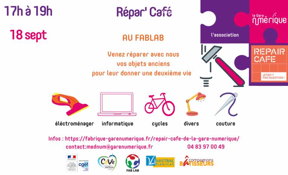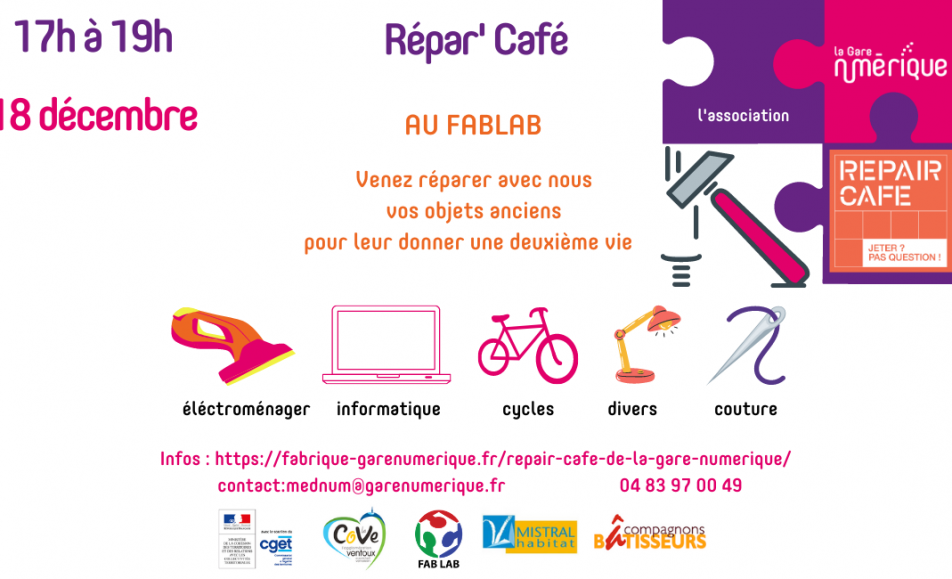Cet atelier est gratuit, alors réparons ensemble! A très vite autour d’un café.