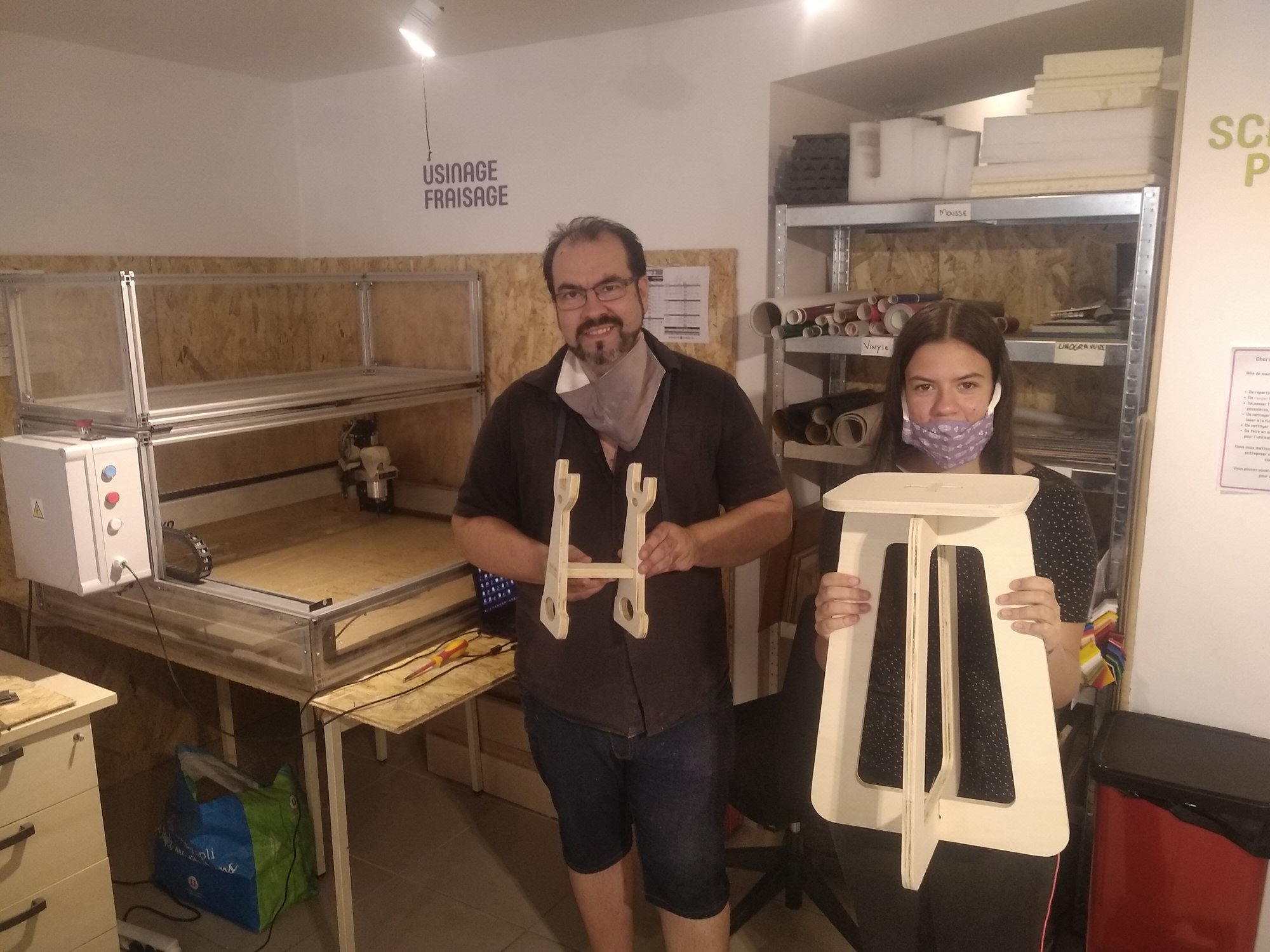 En toute convivialité ils ont appris à vectoriser, à modéliser en 3D, à broder une casquette, à fabriquer un meuble à la fraiseuse CNC, à imprimer en 3D des figurines, à graver sur du bois et le découper au laser…
